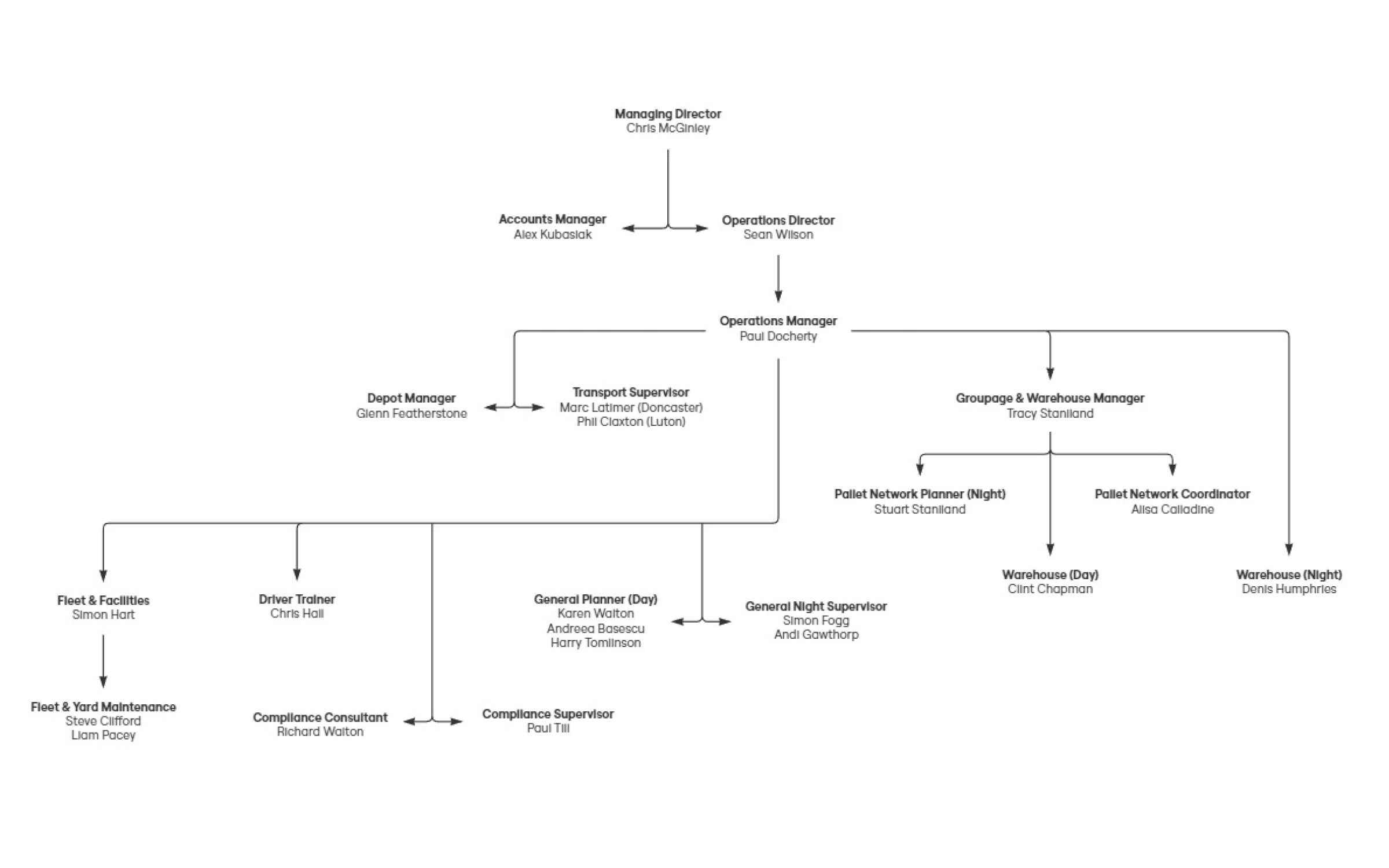 Our business is built on a clear, well-organised structure that keeps every part of our operation running smoothly. Led by our Managing Director, each department works closely together to deliver reliable, efficient service every day.